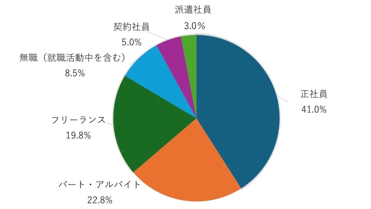 「正社員として安定的に働きたい」という声が一番多かったけど、「フリーランスとして自律的に働きたい」という人も4割近くいたんだ。さらに、「パート・時短勤務などワークライフバランス重視で働きたい」という声も多くて、みんなの働き方に対する価値観が本当に多様になっているのがわかるね。
