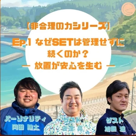 なんで管理しないのに、15年も組織が続いて、人が育っていくんだろう?その秘密を探るために、SETが新しいPodcastシリーズ『合理的ではない組織が、なぜ15年も続くのか?』の配信を始めたんだ。日頃ビジネスや別の組織の最前線で活躍する外部理事の加藤遼さんと安達亮さんも交えて、人口減少時代に「続く場」の条件を探っていくよ。