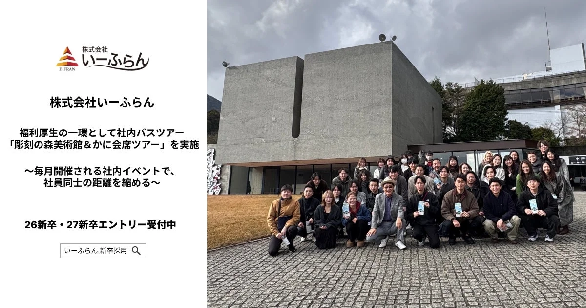 いーふらんでは、福利厚生を「ただの制度」で終わらせない、って考えてるんだって。だから、社員が「行きたい!」って自然と思えるようなイベントを企画しているんだ。その代表的なのが、毎月内容を変えて実施している社内バスツアーだよ。